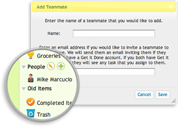 Do you need to delegate tasks to people you work with or even your spouse? Get It Done makes it easy to do with our 'People' feature.